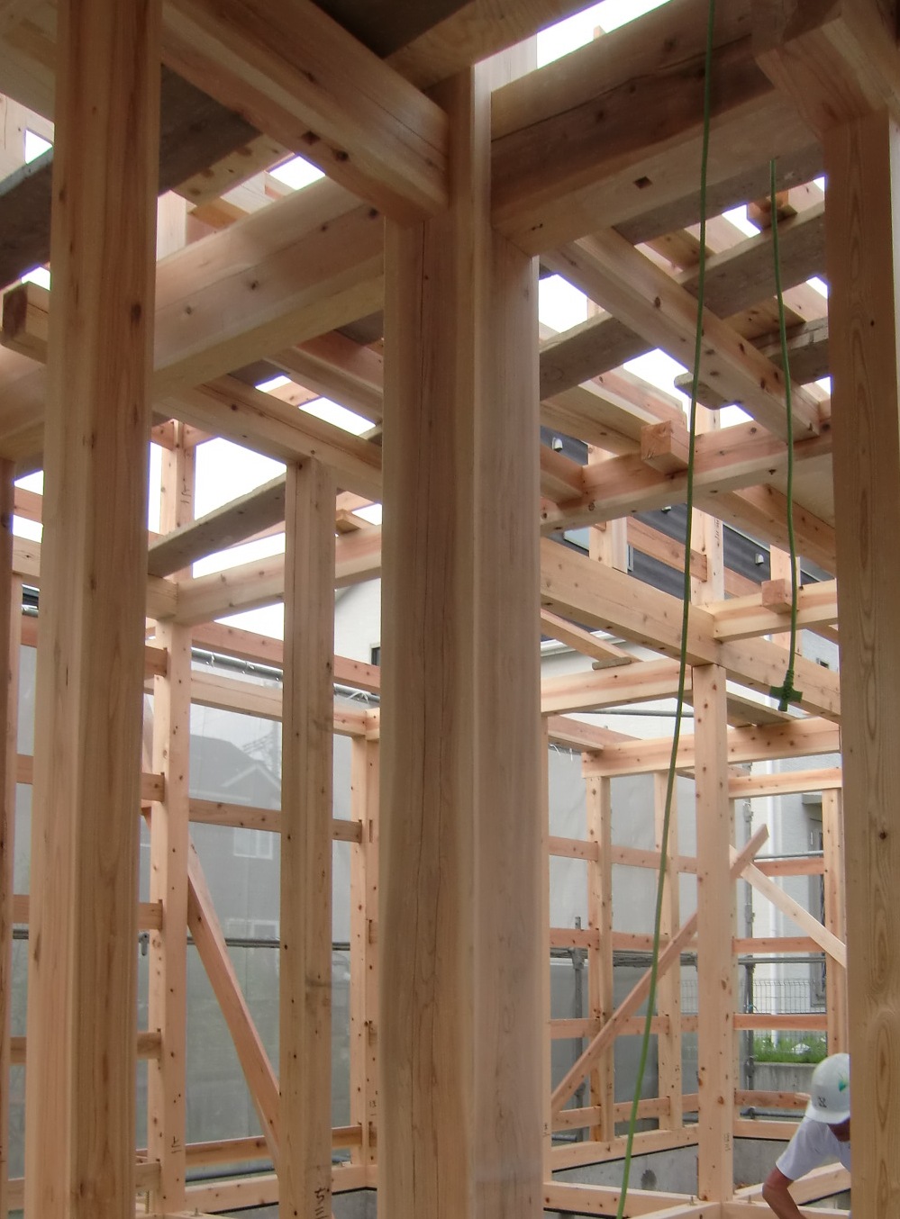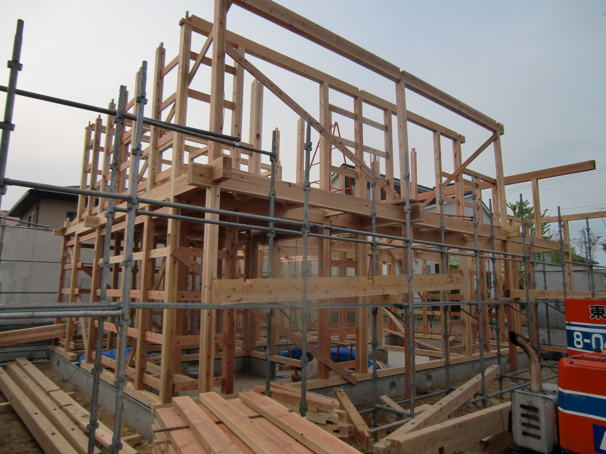 K様邸 基礎工事が完了し、木軸組みの建て方を開始しています。
